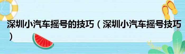 深圳小汽车摇号的技巧(深圳小汽车摇号技巧)