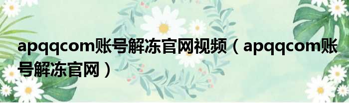 apqqcom账号解冻官网视频(apqqcom账号解冻官网)