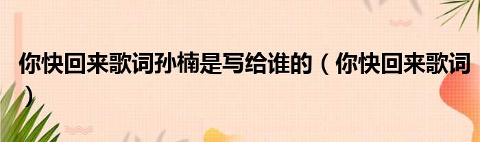 导读 大家好,今天小六子来为大家解答以下的问题,关于你快回来歌词孙楠是写给谁的,你快回来歌词这个很多人还不知道,现在让我们一起来看看吧!1