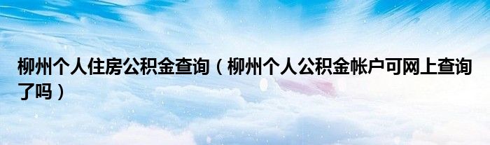 导读 大家好,今天小六子来为大家解答以下的问题,关于柳州个人住房公积金查询,柳州个人公积金帐户可网上查询了吗这个很多人还不知道,现在让我