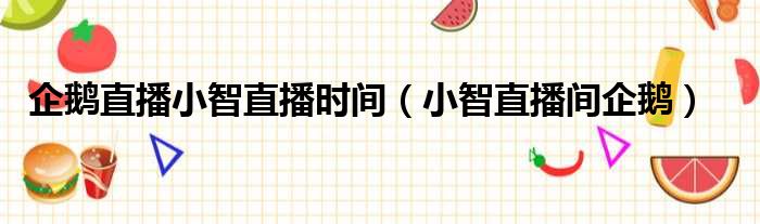 导读 大家好,今天小六子来为大家解答以下的问题,关于企鹅直播小智直播时间,小智直播间企鹅这个很多人还不知道,现在让我们一起来看看吧!1、小