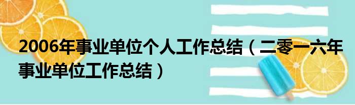 2006年事业单位个人工作总结(二零一六年事业单位工作总结)