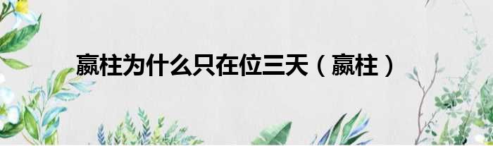 大家好,今天小六子来为大家解答以下的问题,关于嬴柱为什么只在位三天,嬴柱这个很多人还不知道,现在让我们一起来看看吧!