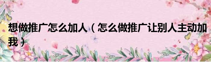 想做推广怎么加人(怎么做推广让别人主动加我)