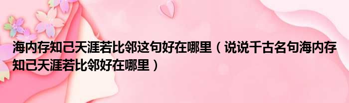 海内存知己天涯若比邻这句好在哪里(说说千古名句海内存知己天涯若比邻好在哪里)