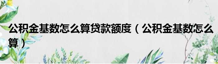 公积金基数怎么算贷款额度(公积金基数怎么算)