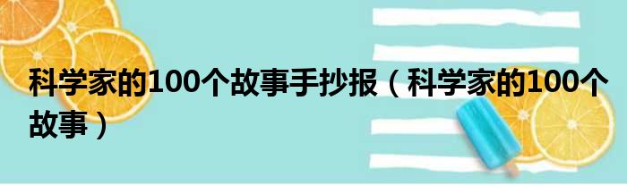 大家好,今天小六子来为大家解答以下的问题,关于科学家的100个故事手抄报,科学家的100个故事这个很多人还不知道,现在让我们一起来看看吧!