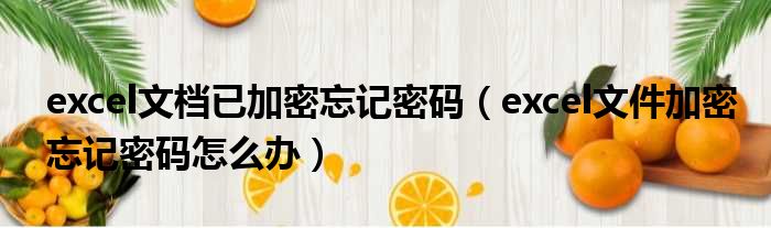 excel文档已加密忘记密码(excel文件加密忘记密码怎么办)