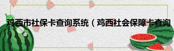 鸡西市社保卡查询系统(鸡西社会保障卡查询)
