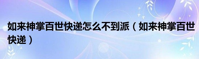如来神掌百世快递怎么不到派(如来神掌百世快递)