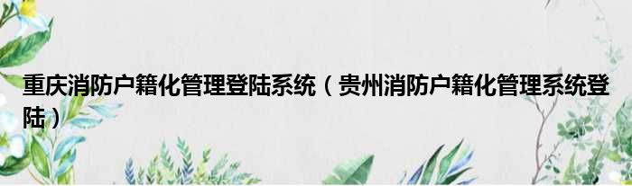 重庆消防户籍化管理登陆系统(贵州消防户籍化管理系统登陆)