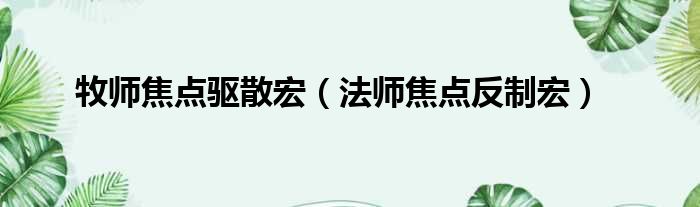 大家好,今天小六子来为大家解答以下的问题,关于牧师焦点驱散宏,法师焦点反制宏这个很多人还不知道,现在让我们一起来看看吧!