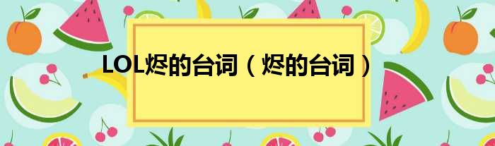 大家好,今天小六子来为大家解答以下的问题,关于LOL烬的台词,烬的台词这个很多人还不知道,现在让我们一起来看看吧!