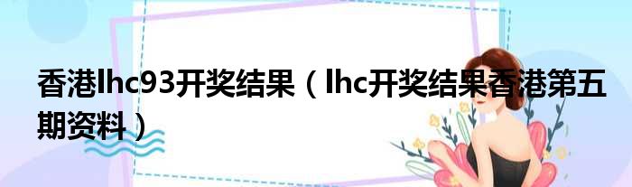 香港lhc93开奖结果(lhc开奖结果香港第五期资料)