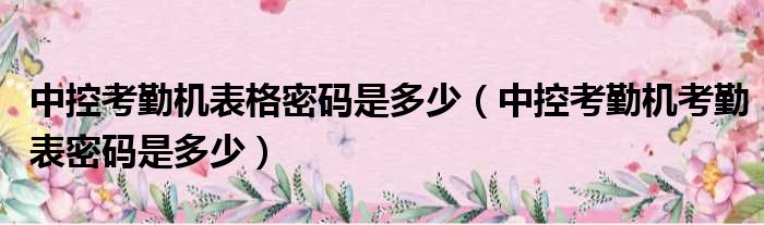 中控考勤机表格密码是多少(中控考勤机考勤表密码是多少)