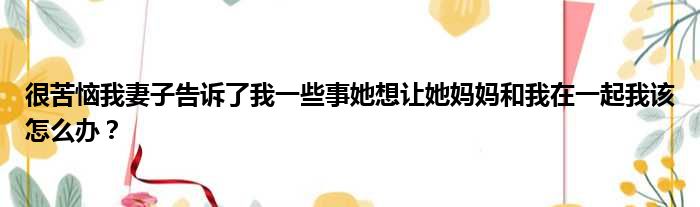 很苦恼我妻子告诉了我一些事她想让她妈妈和我在一起我该怎么办?
