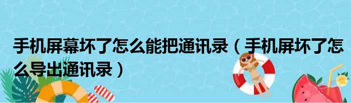 手机屏幕坏了怎么能把通讯录(手机屏坏了怎么导出通讯录)
