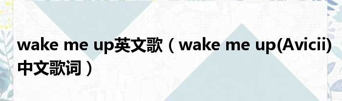 wake me up英文歌(wake me up(Avicii)中文歌词)