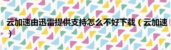 云加速由迅雷提供支持怎么不好下载(云加速)