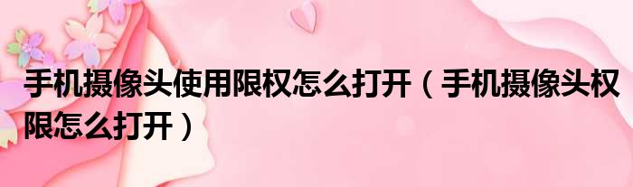 手机摄像头使用限权怎么打开(手机摄像头权限怎么打开)
