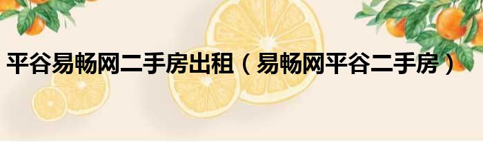 平谷易畅网二手房出租(易畅网平谷二手房)