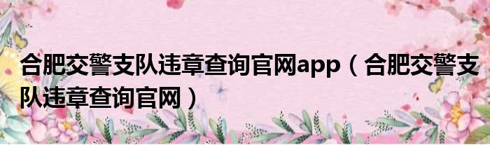 合肥交警支队违章查询官网app(合肥交警支队违章查询官网)