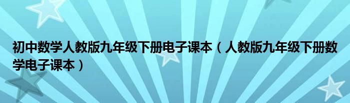 初中数学人教版九年级下册电子课本(人教版九年级下册数学电子课本)