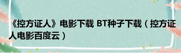 导读 大家好,今天小六子来为大家解答以下的问题,关于《控方证人》电影下载 BT种子下载,控方证人电影百度云这个很多人还不知道,现在让我们一