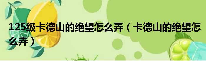 125级卡德山的绝望怎么弄(卡德山的绝望怎么弄)