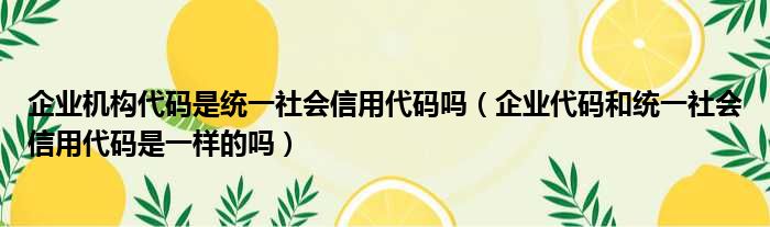 企业机构代码是统一社会信用代码吗(企业代码和统一社会信用代码是一样的吗)