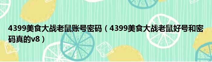 4399美食大战老鼠账号密码(4399美食大战老鼠好号和密码真的v8)