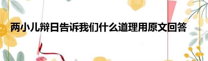 大家好,今天小六子来为大家解答以下的问题,关于两小儿辩日告诉我们什么道理用原文回答这个很多人还不知道,现在让我们一起来看看吧!
