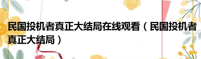 民国投机者真正大结局在线观看(民国投机者真正大结局)