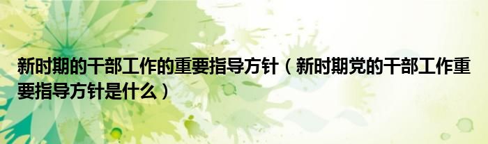 新时期的干部工作的重要指导方针(新时期党的干部工作重要指导方针是什么)