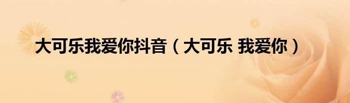 大家好,今天小六子来为大家解答以下的问题,关于大可乐我爱你抖音,大可乐 我爱你这个很多人还不知道,现在让我们一起来看看吧!