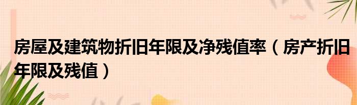 导读 大家好,今天小六子来为大家解答以下的问题,关于房屋及建筑物折旧年限及净残值率,房产折旧年限及残值这个很多人还不知道,现在让我们一起