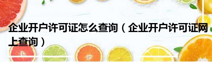 导读 大家好,今天小六子来为大家解答以下的问题,关于企业开户许可证怎么查询,企业开户许可证网上查询这个很多人还不知道,现在让我们一起来看