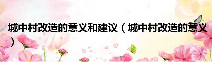城中村改造的意义和建议(城中村改造的意义)