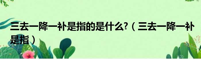 导读 大家好,今天小六子来为大家解答以下的问题,关于三去一降一补是指的是什么?,三去一降一补是指这个很多人还不知道,现在让我们一起来看看吧