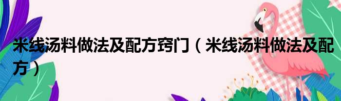 米线汤料做法及配方窍门(米线汤料做法及配方)