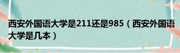 导读 大家好,今天小六子来为大家解答以下的问题,关于西安外国语大学是211还是985,西安外国语大学是几本这个很多人还不知道,现在让我们一起来