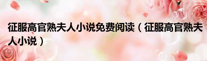征服高官熟夫人小说免费阅读(征服高官熟夫人小说)
