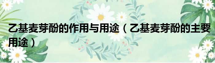 导读 大家好,今天小六子来为大家解答以下的问题,关于乙基麦芽酚的作用与用途,乙基麦芽酚的主要用途这个很多人还不知道,现在让我们一起来看看