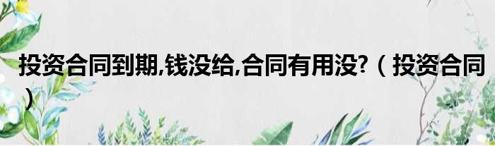 投资合同到期,钱没给,合同有用没?(投资合同)