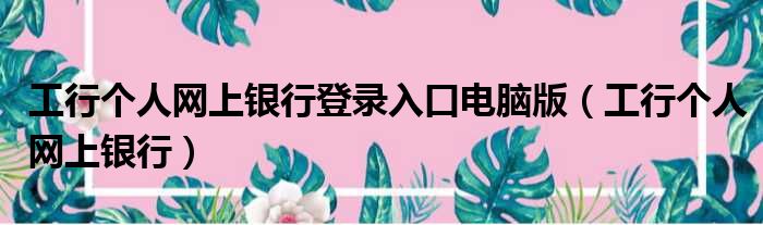 工行个人网上银行登录入口电脑版(工行个人网上银行)