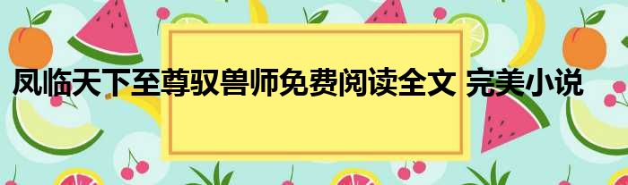 大家好,今天小六子来为大家解答以下的问题,关于凤临天下至尊驭兽师免费阅读全文 完美小说这个很多人还不知道,现在让我们一起来看看吧!