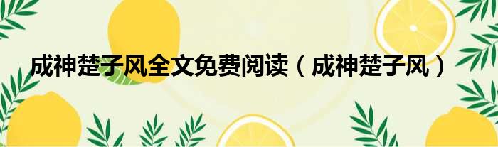 成神楚子风全文免费阅读(成神楚子风)