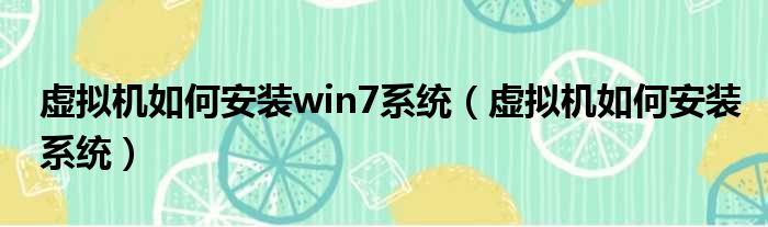 虚拟机如何安装win7系统(虚拟机如何安装系统)