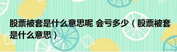股票被套是什么意思呢 会亏多少(股票被套是什么意思)