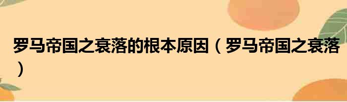 罗马帝国之衰落的根本原因(罗马帝国之衰落)